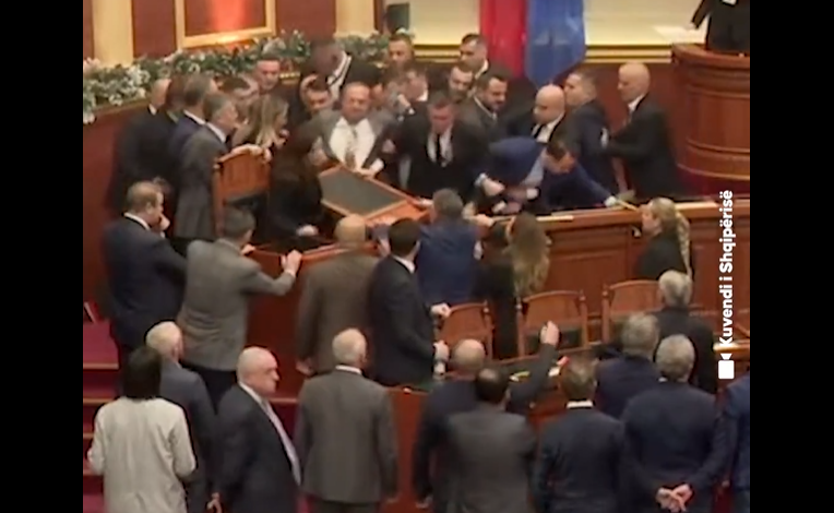 Prema izvještajima, do sukoba je došlo kada su članovi Demokratske stranke (DP) blokirali govornicu i ministarska mjesta, zahtijevajući od parlamentarne većine da smijeni zamjenicu premijera i ministricu infrastrukture i energetike, Belindu Balluku.