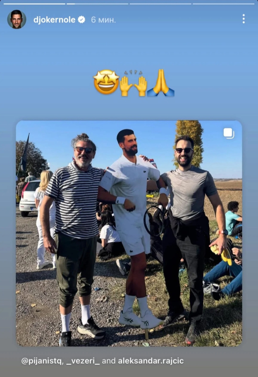 Treći story bio je taj koji je zabio najdublji klin u propagandni zid. Novak je objavio fotografiju s beogradskih protesta – na kojoj demonstrant nosi maketu s njegovim likom i natpisom “Srbija, probudi se”. Time je jasno pokazao da je i dalje uz narod, da ga ni udaljenost ni pritisci nisu odvojili od istine.