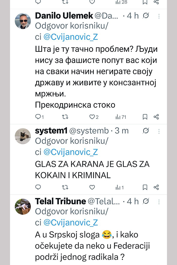 Ova izjava odmah je izazvala reakcije u Srbiji, gdje su se mnogi oglasili kritizirajući ton i poruke koje je Cvijanović uputila. U komentarima se najčešće ponavlja stav da politički predstavnici iz Republike Srpske, uključujući Cvijanović, dodatno produbljuju podjele i narative koji ne pomažu stabilnosti.