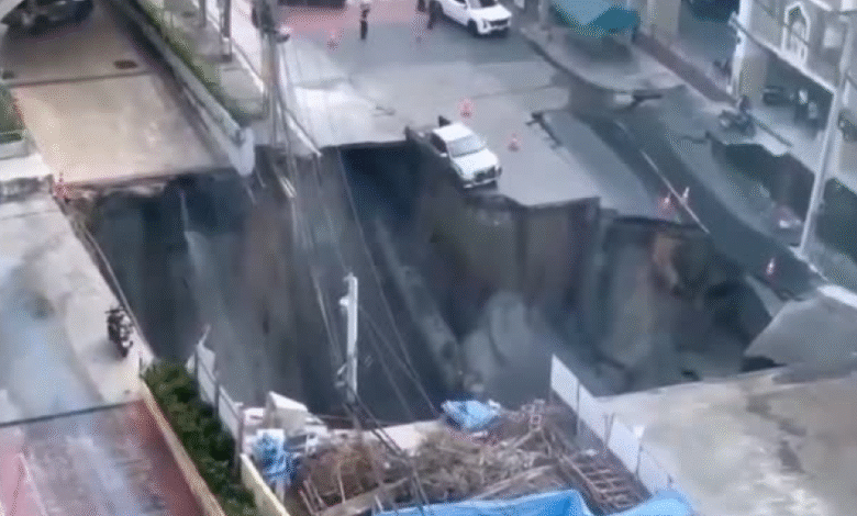 #Tailandia || En Bankok, capital tailandesa, se produjo un enorme socavón en una transitada calle de la ciudad afectando vehiculos y edificios. pic.twitter.com/bdTaNp7pTA