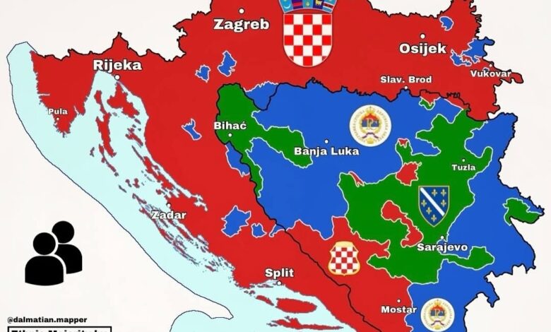 Na društvenim mrežama posljednjih dana širi se karta koja je ponovo podigla prašinu u regiji. Na njoj su jasno označena etnička većina u Hrvatskoj i Bosni i Hercegovini, a mnogi korisnici vide više od pukih statističkih podataka – za njih je ovo politički signal, podsjetnik na rane devedesetih i upozorenje o krhkoj stabilnosti danas.