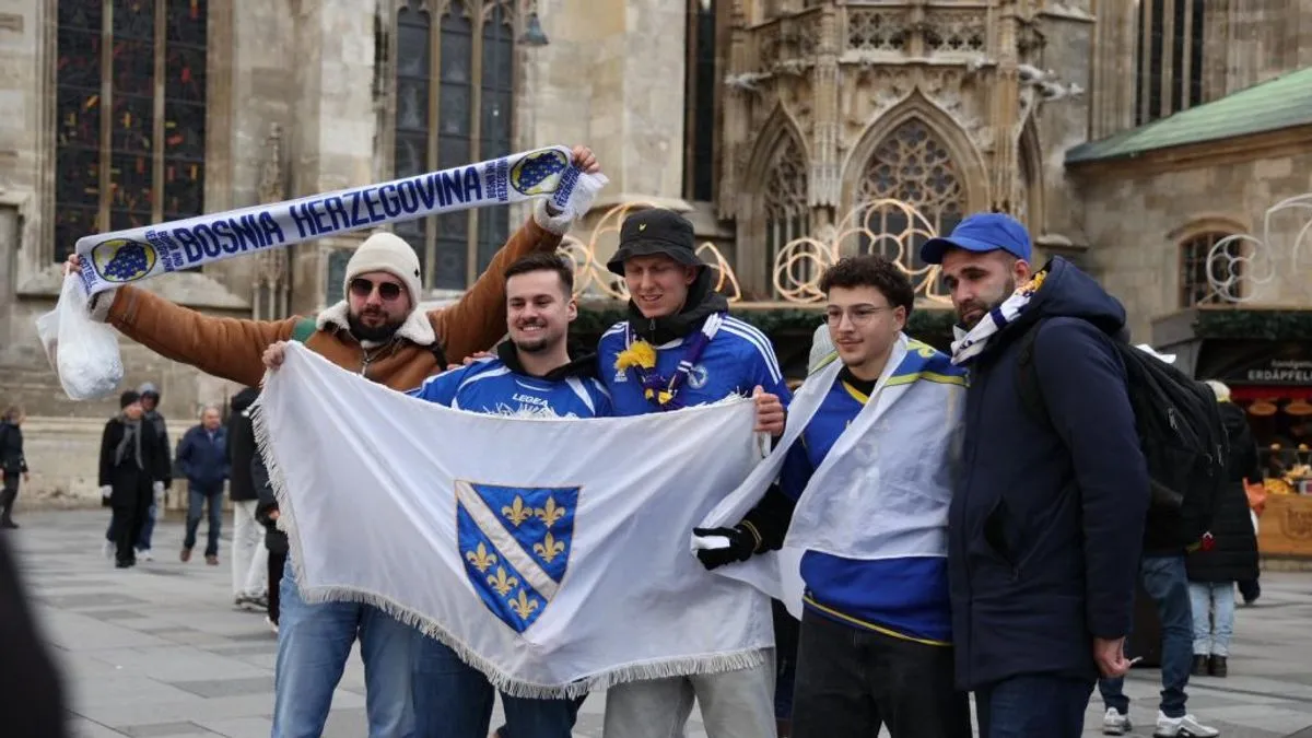 Tokom cijelog dana ulice Beča bile su u znaku naše reprezentacije – navijači su preplavili grad, noseći zastave, navijačke rekvizite i pjesmu koja najavljuje večernji spektakl. Najvatreniji među njima, BH Fanaticosi, pozvali su sve da im se pridruže u korteu koji je planiran za 18:00 sati. Poruka je jasna: “Ljiljani obavezni.”