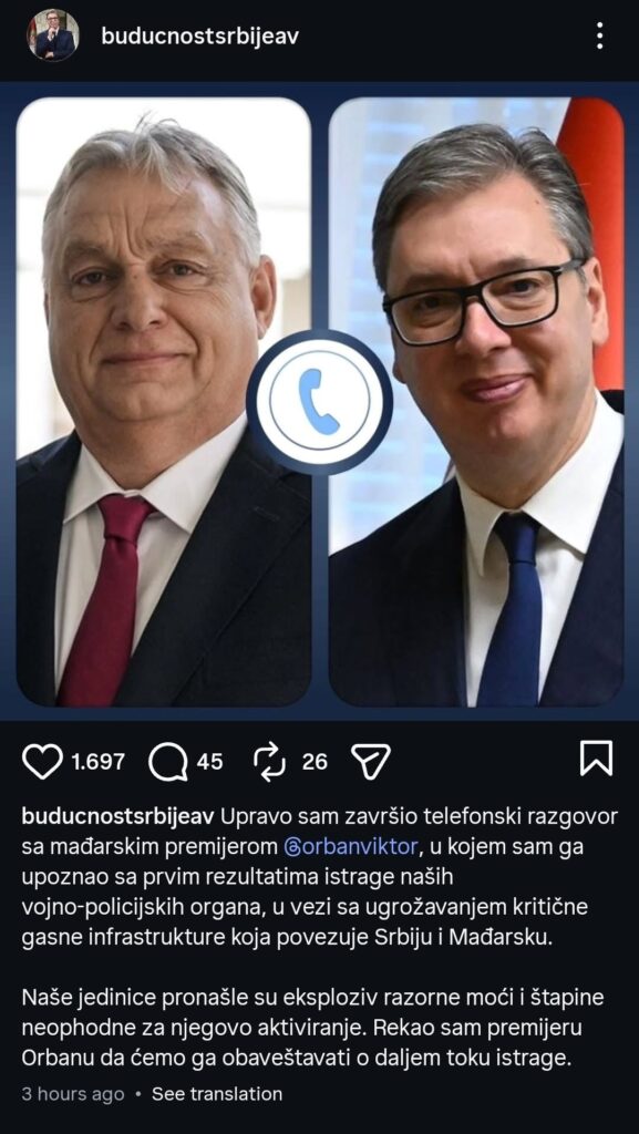 Da je eksploziv aktiviran, posljedice bi mogle biti velike. Ne samo po ljude u okolini, nego i po snabdijevanje plinom. To znači da bi bez plina mogli ostati dijelovi Srbije, ali i susjedne države poput Mađarske.