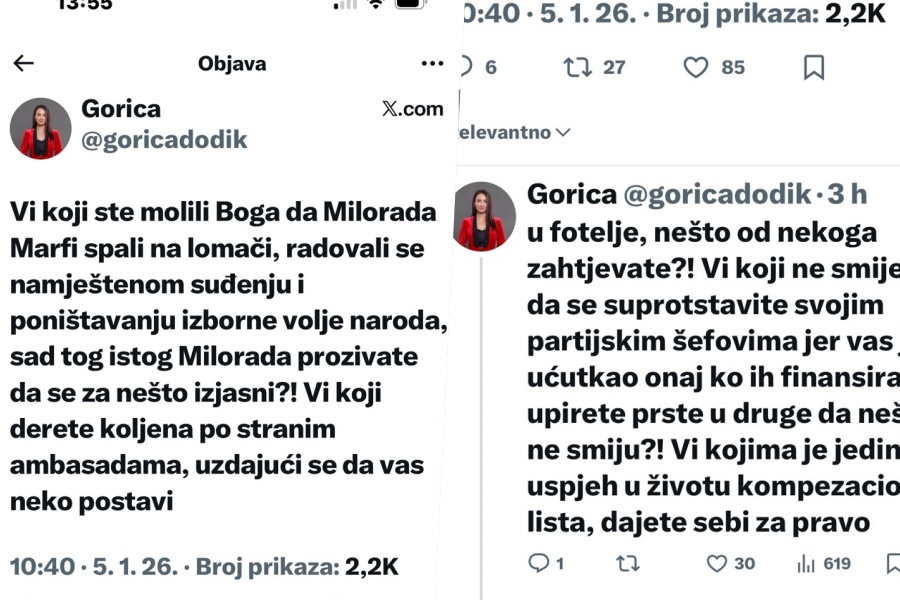 Pod pritiskom javnosti, svoju reakciju dala je i Gorica Dodik, kćerka Milorada Dodika. Njena poruka na društvenim mrežama bila je žestoka i direktna: