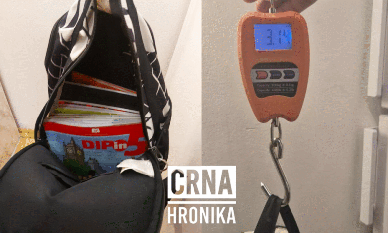 Fotografija koju je redakciji portala Crna-Hronika dostavio jedan od zabrinutih roditelja prikazuje torbu nižerazrednog učenika napunjenu udžbenicima, radnim sveskama i školskim priborom, a vaga pokazuje 3,14 kilograma. Stručnjaci već godinama upozoravaju da težina torbe ne bi smjela prelaziti 10% ukupne težine djeteta — što je u ovom slučaju daleko premašeno.
