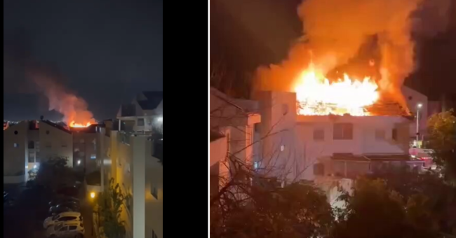 Footage from impact sites in central Israel shows fires caused by fragments from an Iranian missile.